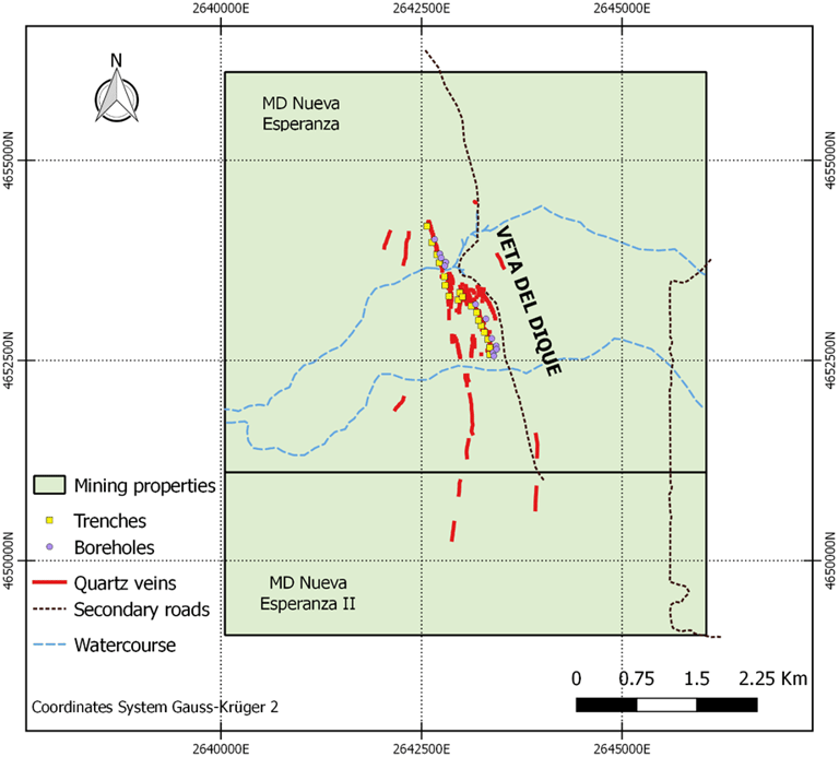del Dique. Allí, se mapearon las vetas, se abrieron 700 m de trincheras y se